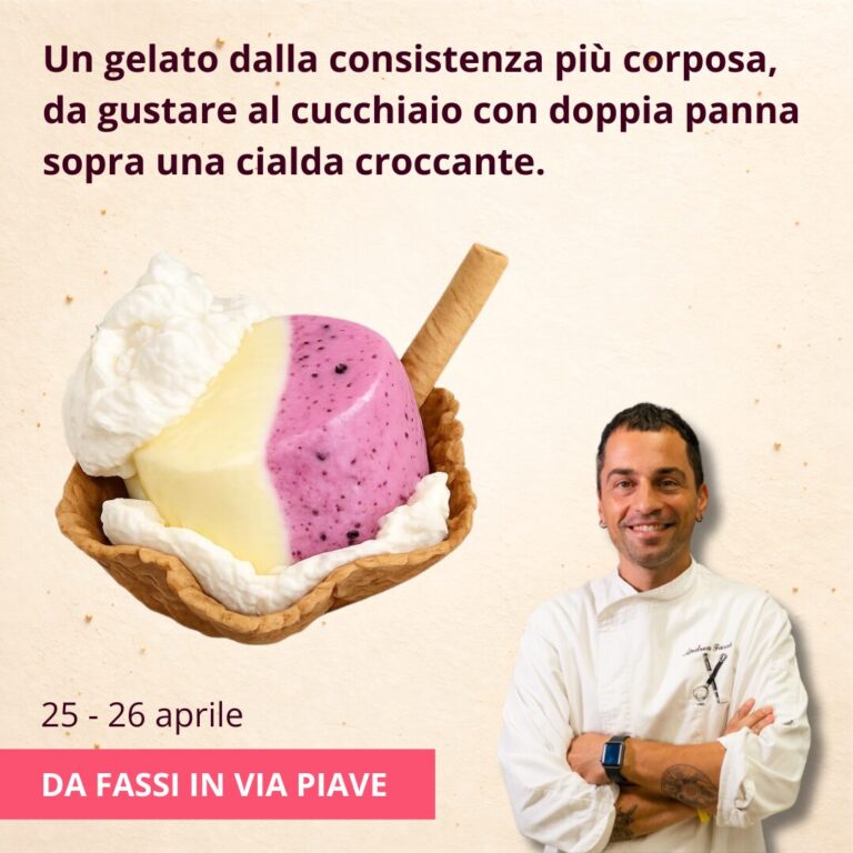 Solo per i partecipanti all’evento sarà possibile portare a casa 2 porzioni del “gelato pezzo duro” a soli 2,50 € ciascuna (incluse 2 cialde e la panna). Un’occasione per stupire i tuoi ospiti o per regalarti un momento di piacere unico.